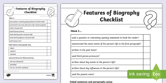 Ks2 Features Of A Biography Writing Checklist Teacher Made